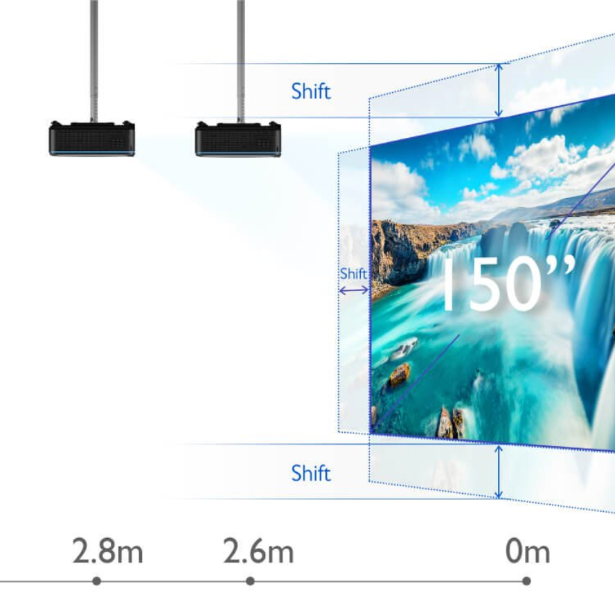 Precision Lens Shift and Keystone Correction: Adjust image placement easily with vertical lens shift and 2D keystone correction.