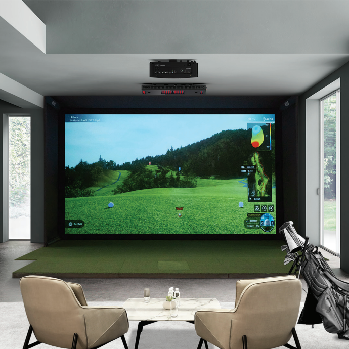 The ceiling-mounted EYE XO system is straightforward to install, and its calibration process is simple, allowing for hassle-free setup in home simulators or commercial facilities.