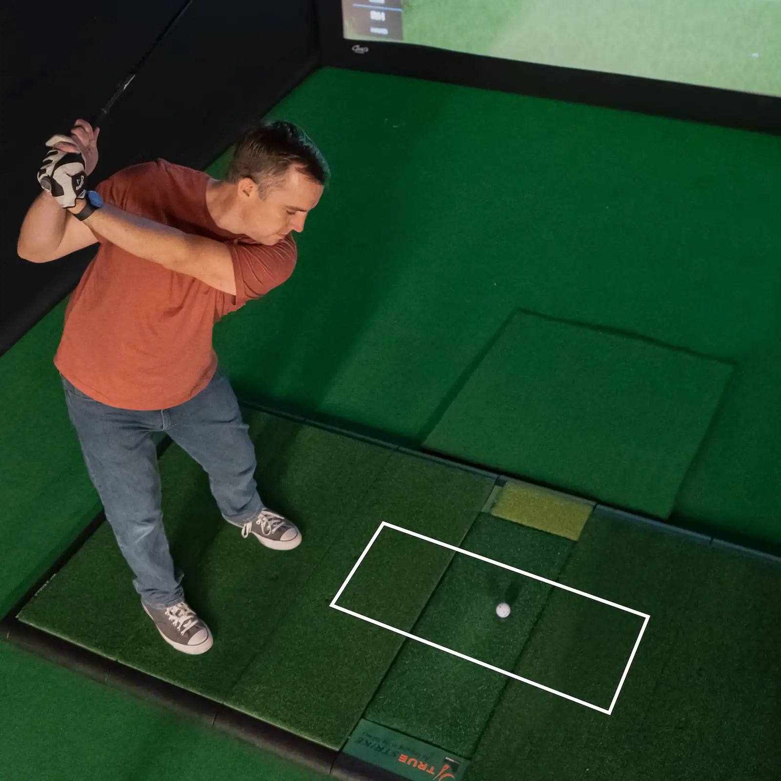 Golfer to Screen Position: Stand 10-12 feet back from the impact screen to minimize bounce-back risk.